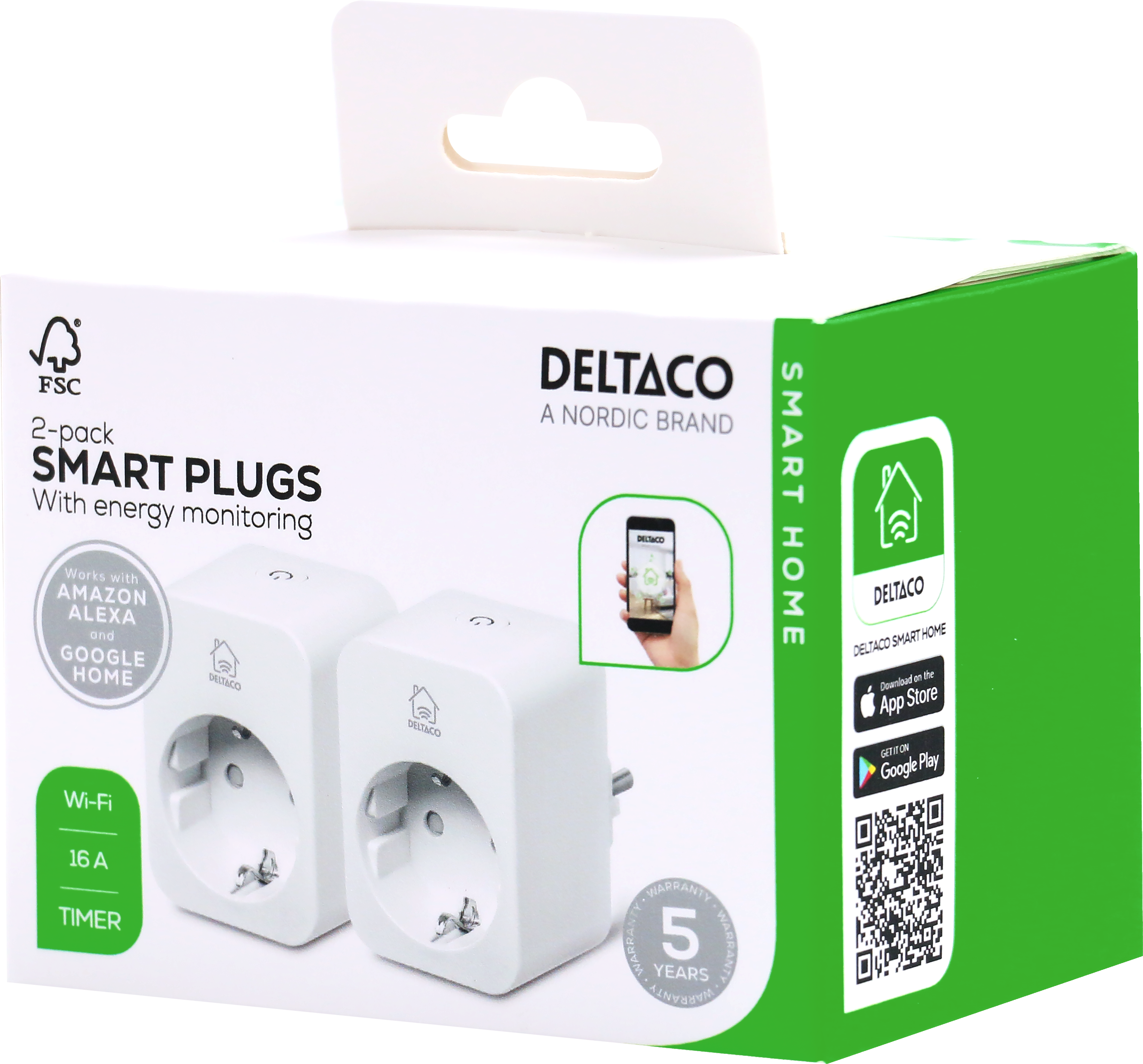 SMART HOME strömbrytare, WiFi 2,4 GHz, 1xCEE 7/3, 16A, timer, 220–240 V, 2-pack