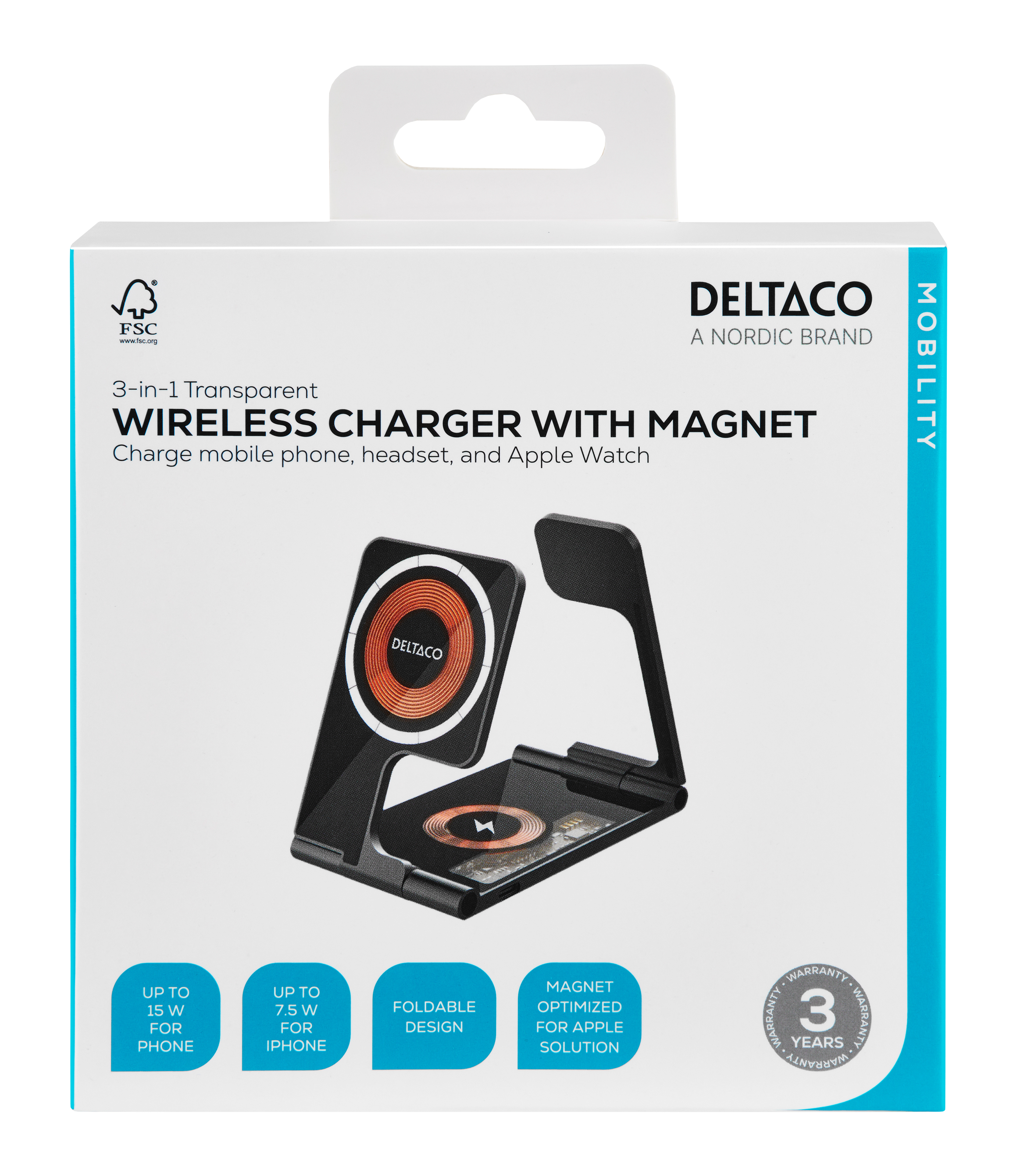 3-i-1 transparent hopfällbar trådlös laddare med magnet, för iPhone, TWS och Apple Watch